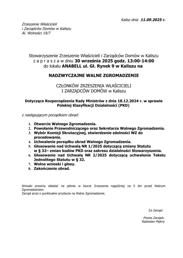 Zapraszamy wszystkich Właścicieli nieruchomości zarządzanych przez ZWiZD na bezpłatne porady prawne. Adwokat Krzysztof Kaczmarek będzie pełnił dyżur w siedzibie Zrzeszenia Al. Wolności 19/7 w Kaliszu według następującego harmonogramu 7 października – godz. 9:30-10:3015 października – godz. 11:30-12:3022 października – godz….